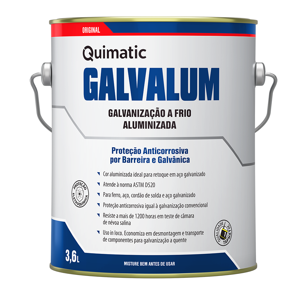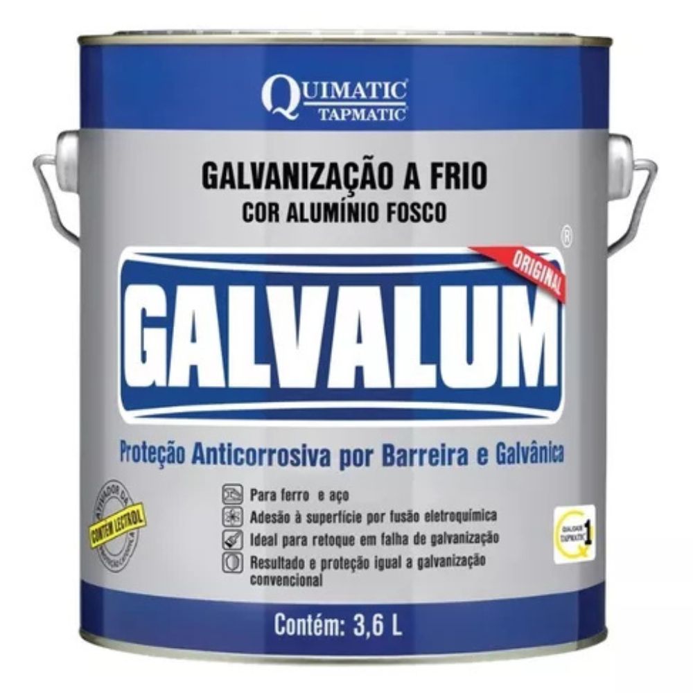 GALVALUM é um revestimento para galvanização a frio, na cor cinza aluminizada, composto rico em zinco para superfícies de ferro e aço carbono, que garante excepcional propriedade anticorrosiva à superfície por ele protegida.