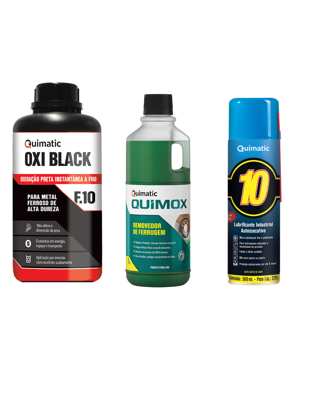 6. Logo após o processo de oxidação proteger a peça com QUIMATIC 10, para prevenir que a peça enferruje. Esse protetivo pode ser removido após alguns dias do término do processo.