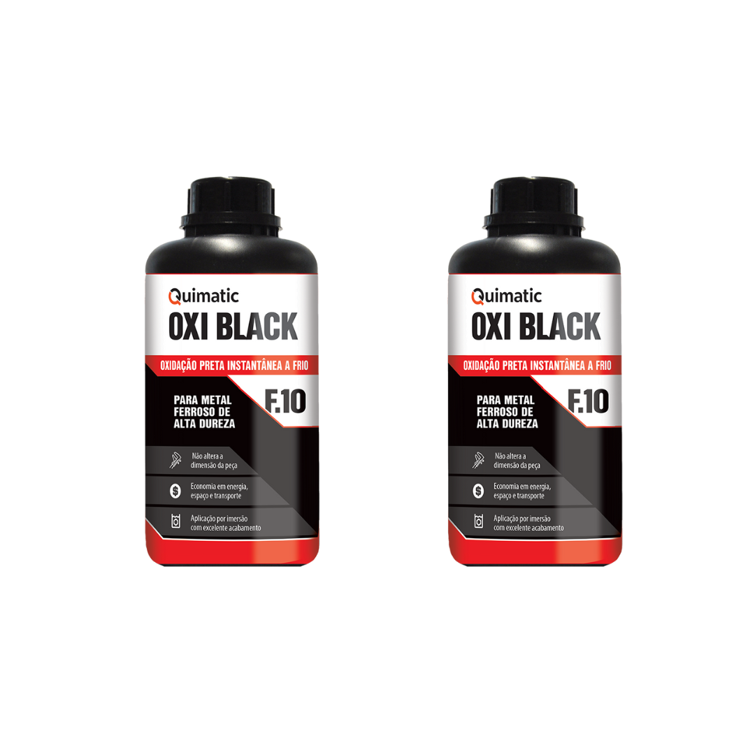 OXI BLACK F10 é indicado para o acabamento preto de superfícies metálicas de ferro e aço, de forma consistente e uniforme, num processo a frio e sem modificação dimensional ou estrutural. OXI BLACK F10 para superfícies ferrosas polidas. Indicado para armamentos, ferramentas, parafusos, porcas, objetos de decoração etc.