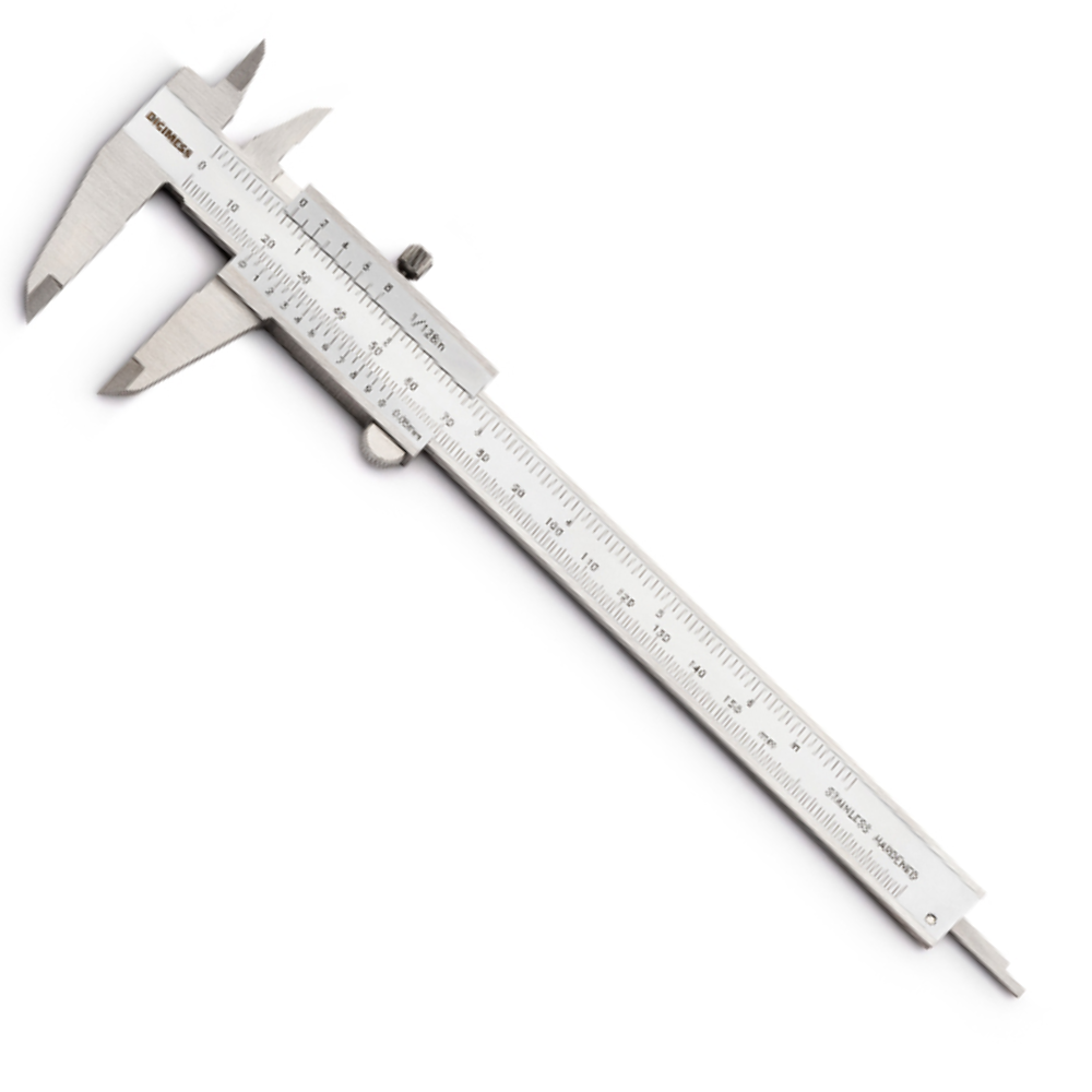 O Paquímetro Universal Analógico (capacidade 150mm/6", graduação 0,05mm/1/128") é um instrumento de medição preciso, fabricado em aço inoxidável temperado e projetado para medições internas, externas, de profundidade e de ressaltos.