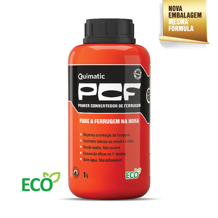 PCF é uma composição de agentes convertedores de ferrugem, que transformam a ferrugem num fundo preto, resistente à corrosão, preparando a superfície para o recebimento de pintura de acabamento, sem a necessidade de jateamento ou lixamento. Dispensa outros fundos e possui proteção anticorrosiva.